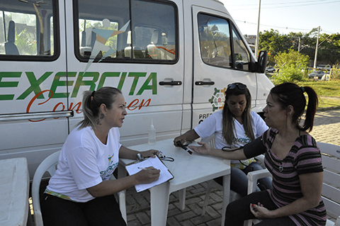 De acordo com a coordenadora do Programa, Luana Torres, cada dia da semana a van da saúde estaciona em uma academia da cidade sempre na parte da manhã, onde atende a comunidade da região ao ar livre. “No local nossa equipe formada por um educador físico e uma técnica de enfermagem faz uma avaliação física com aferição de pressão, frequência cardíaca, verificação do índice de massa corpórea, medida da circunferência abdominal, pesagem. Se avaliar como necessário o profissional encaminha a Unidade Básica de Saúde para consulta”, explica.